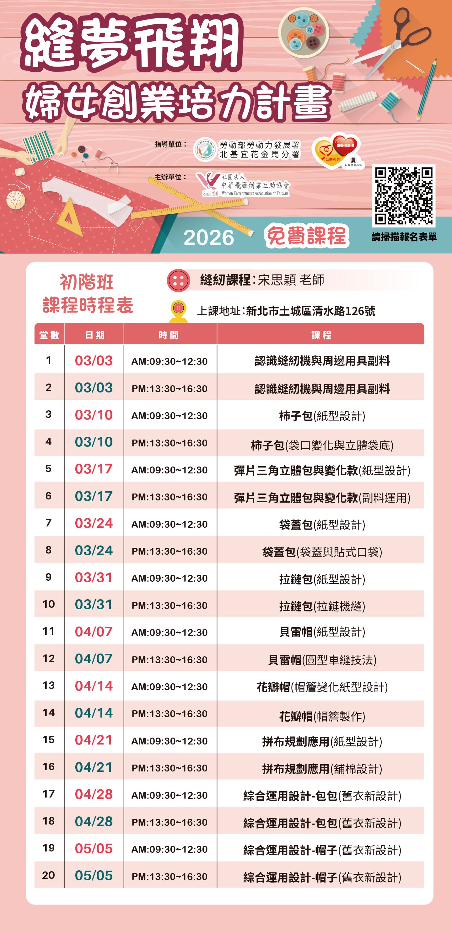 招生對象:居住於 大台北地區,有志重返職場的婦女